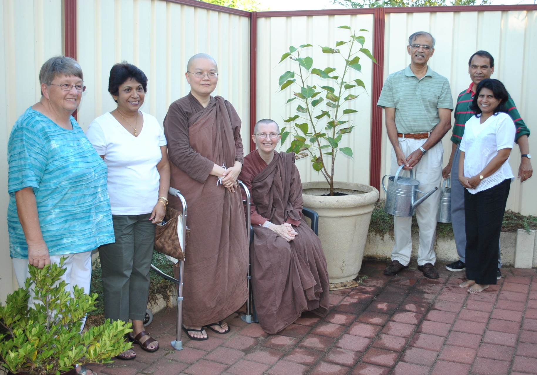 A few of our supporters came to help us on that Sunday afternoon of 28th of April. It was a small event because it was a small job. The afternoon also brought people together. Our kind neighbours lent us their hands and offered us some of their gravel from the garden and the use of their tools. After we transferred the Bodhi Tree into its pot, we chanted the gatha to pay respect to the Bodhi Tree, and the ‘Jaya Paritta’. It was a lovely and pleasant afternoon.