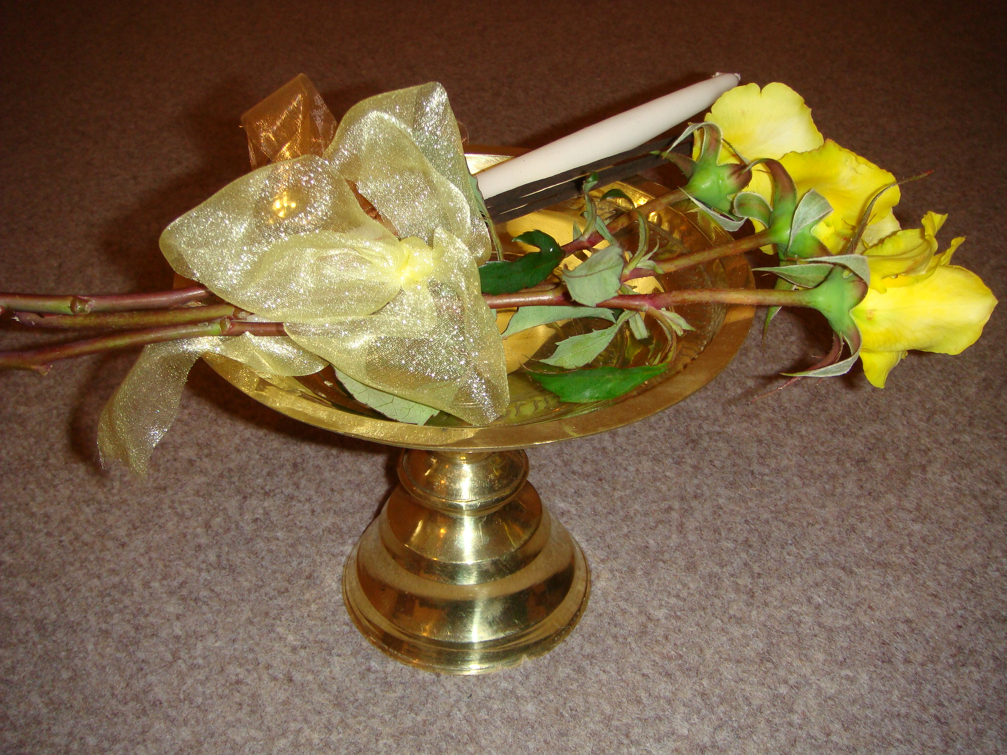 The beautiful tray of flowers, candle and incense for the Forgiveness Ceremony at Patacara Bhikkhuni Hermitage, 19th October 2013.