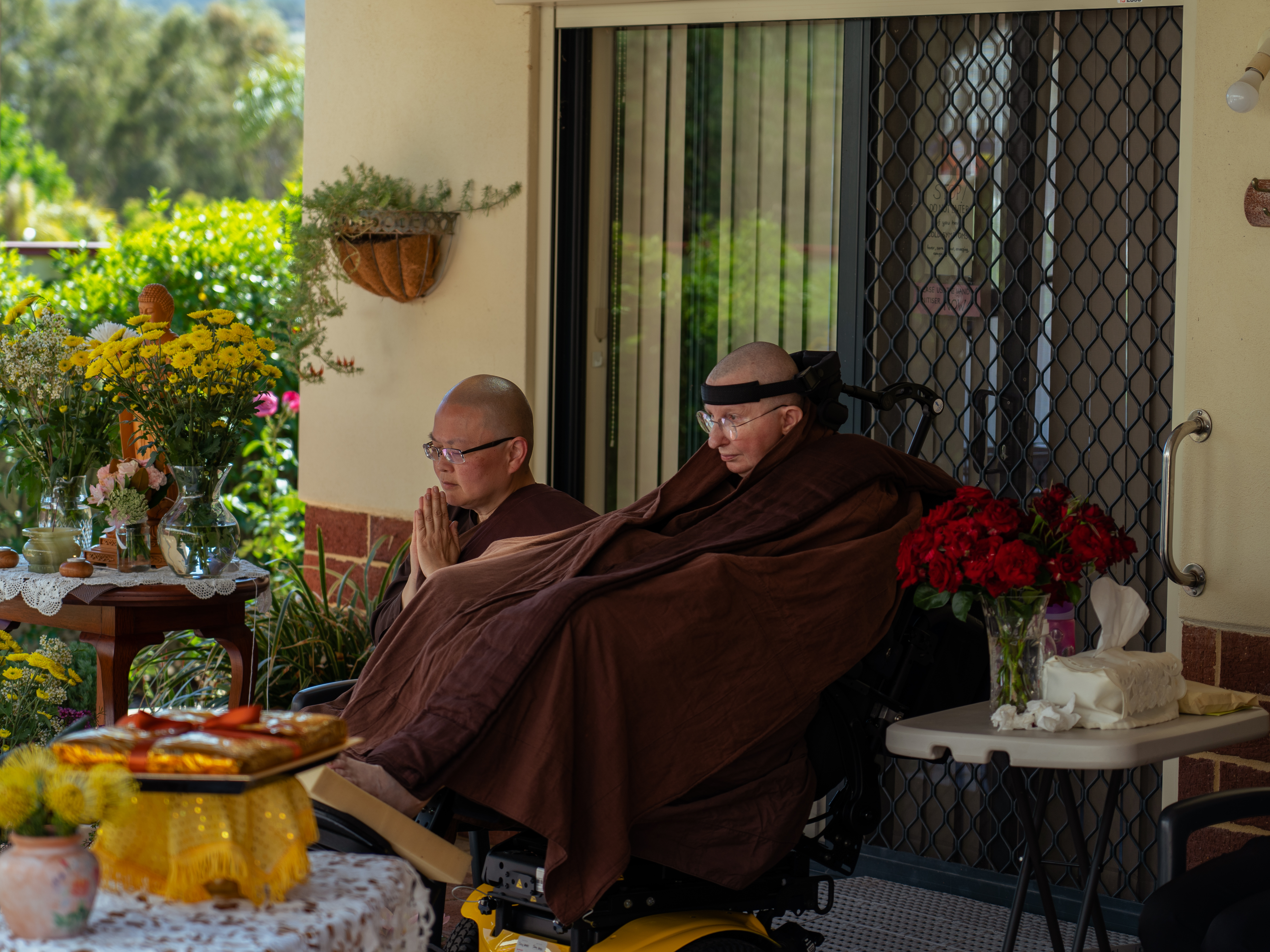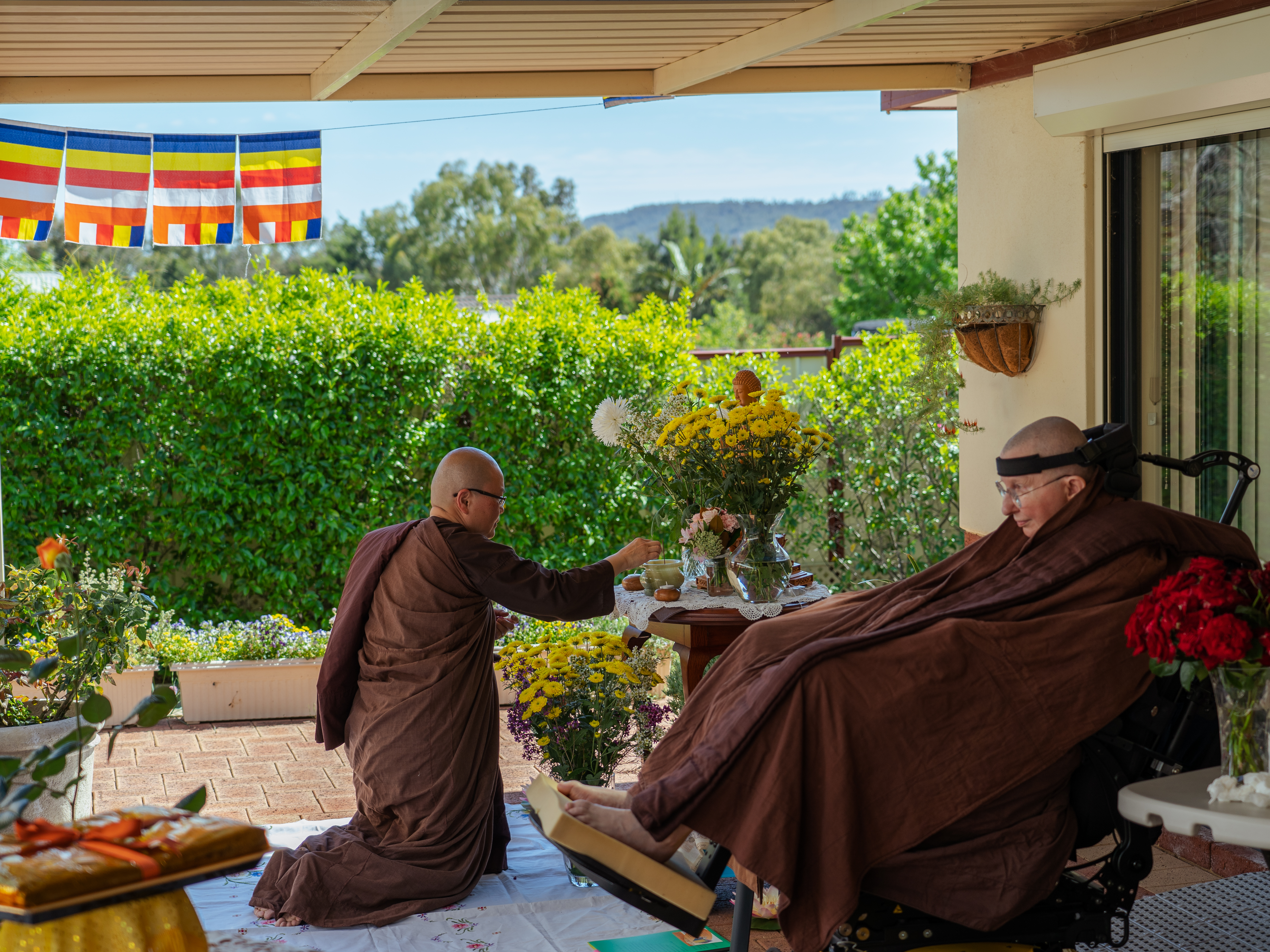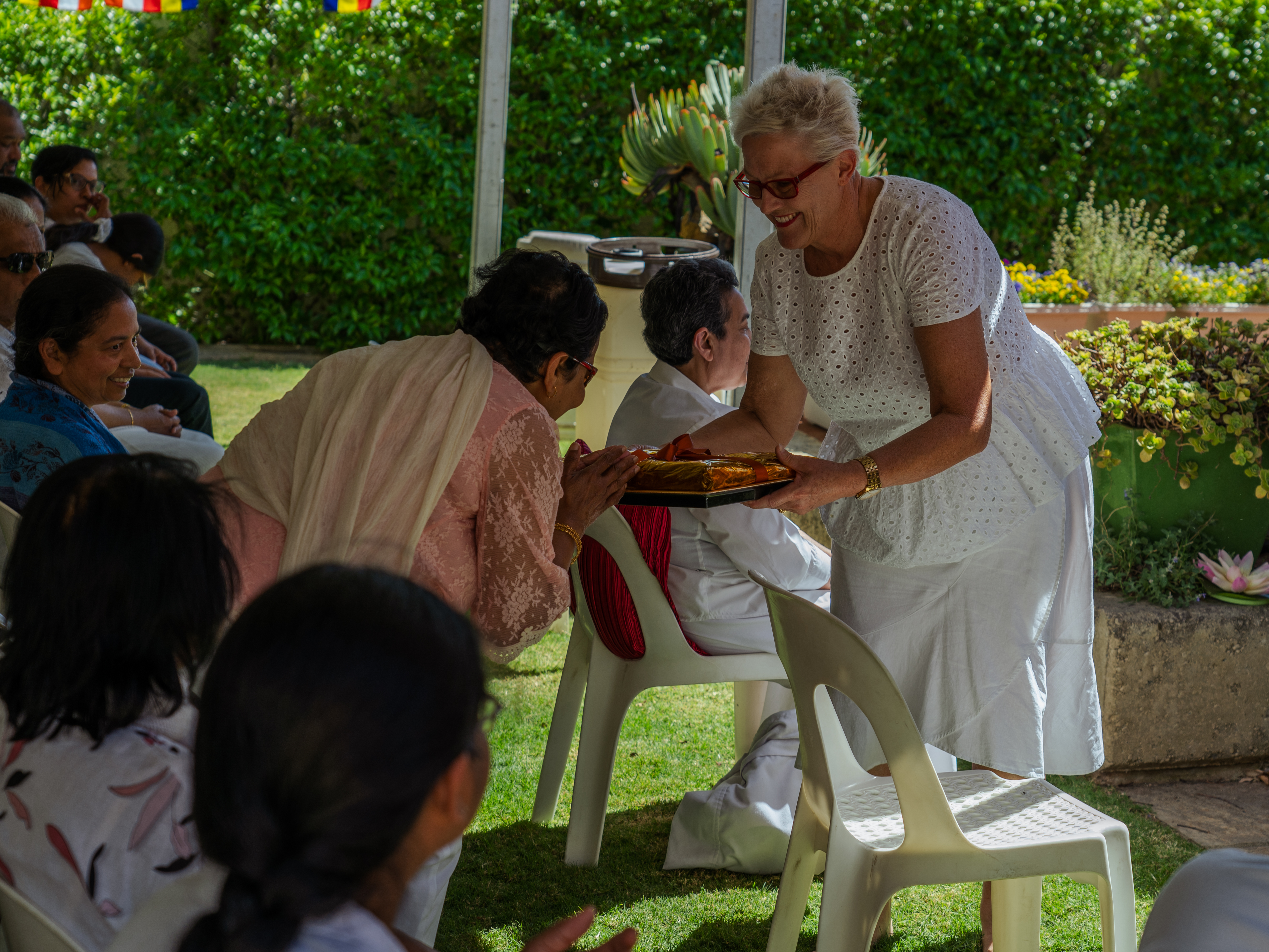 The committee members of Patacara Bhikkhuni Hermitage Incorporated, which was formed in 2011 offered the the robe cloth to the Bhikkhunis at Patacara Bhikkhuni Hermitage. The committee led by the current chairperson, Chrissie Anderson, consist of Jacky Lambert, Jo Bower, Karen Sprigg, Peace Weeks, and Ming Cassim.