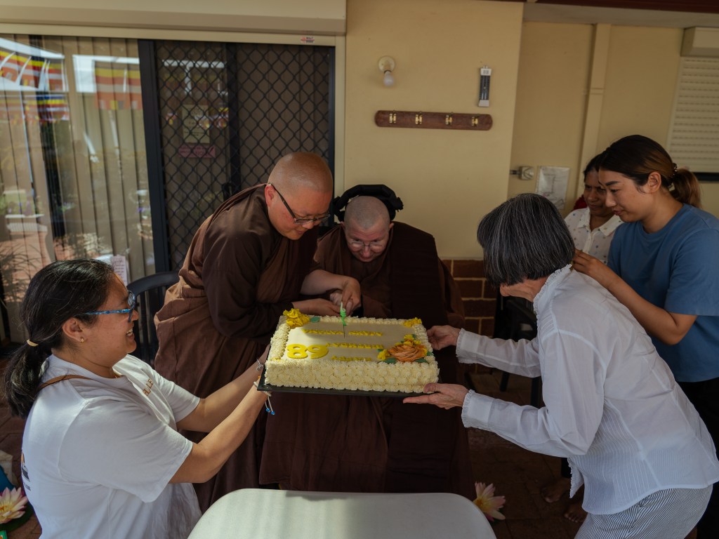 At the end of the ceremony, we also celebrated Ayya Vayama Bhikkhuni’s 68th birthday.