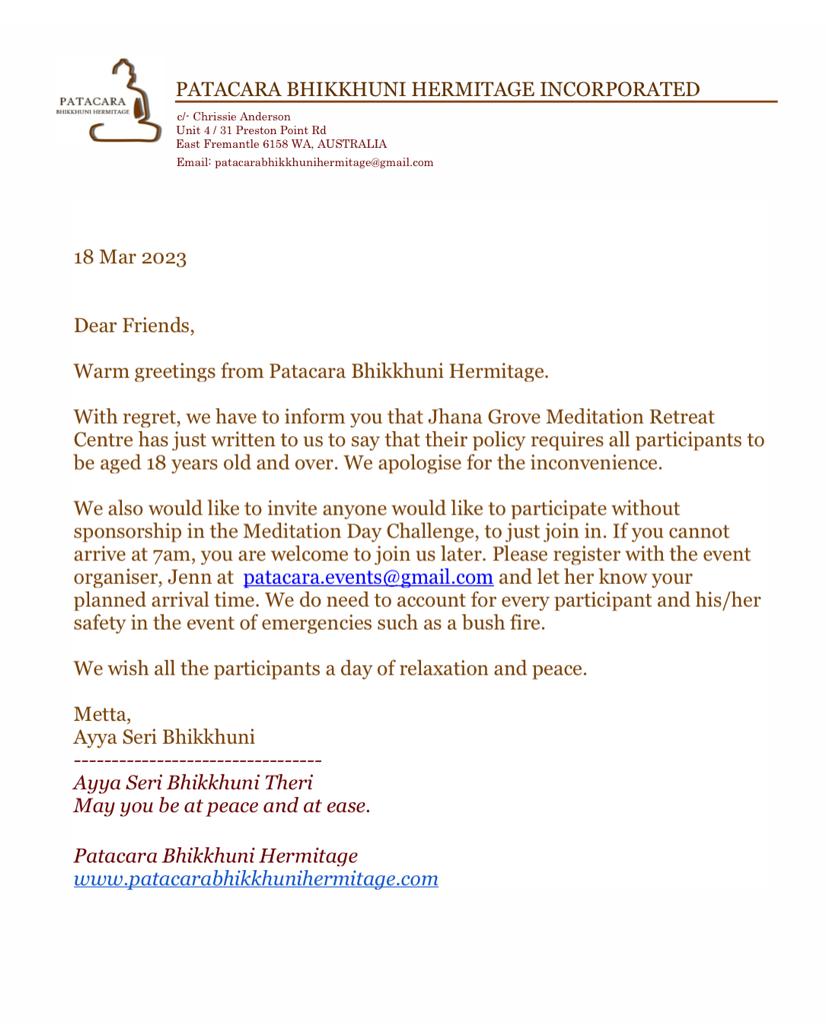 This entry was posted in 2023, Announcements, Events and tagged Ayya Seri Bhikkhuni Theri, Fund Raising for Patacara Bhikkhuni Hermitage Property, Meditation Day, Patacara Bhikkhuni Hermitage. Bookmark the permalink.