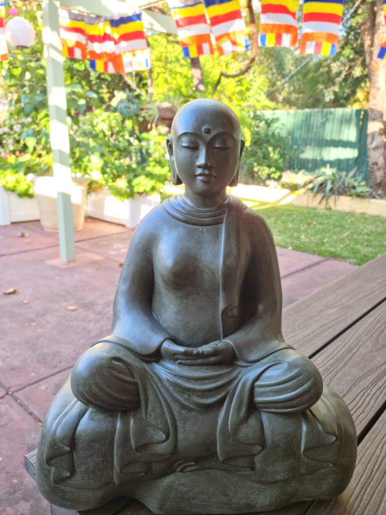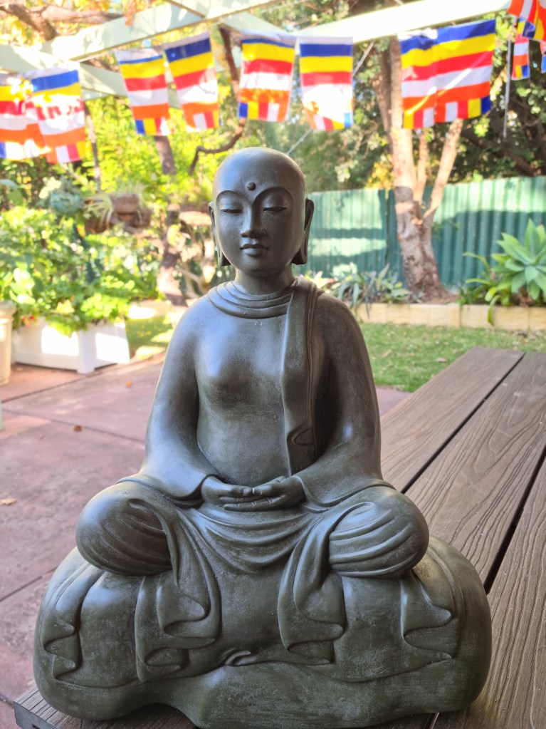 The beautiful and serene statue of Arahat Patacara Bhikkhuni arrived at Patacara Bhikkhuni Hermitage on Wednesday 14th June 2023. The statue is made of Balinese volcanic rock with jade patina.