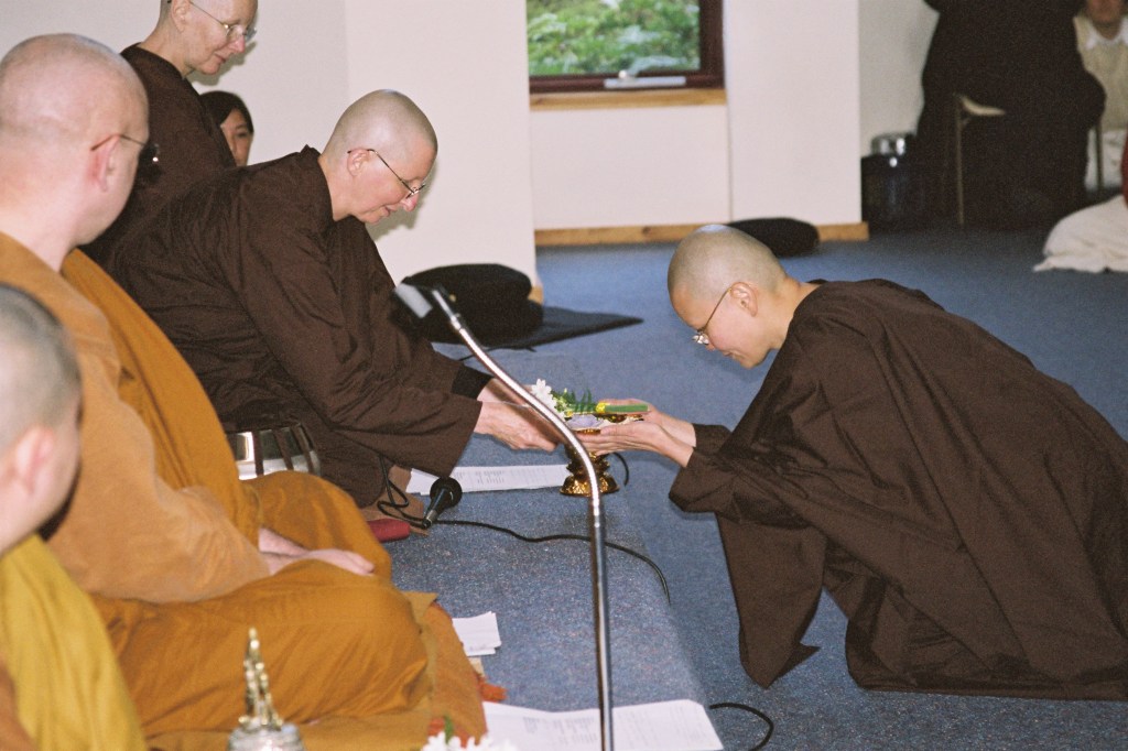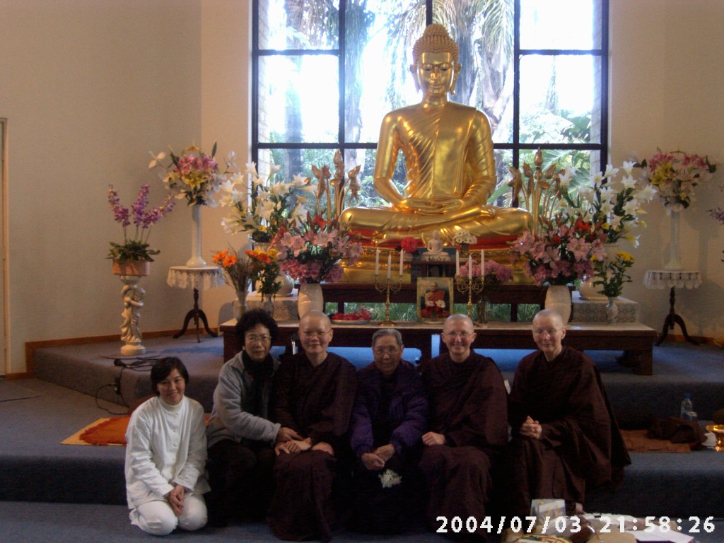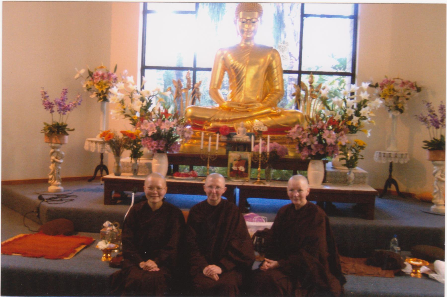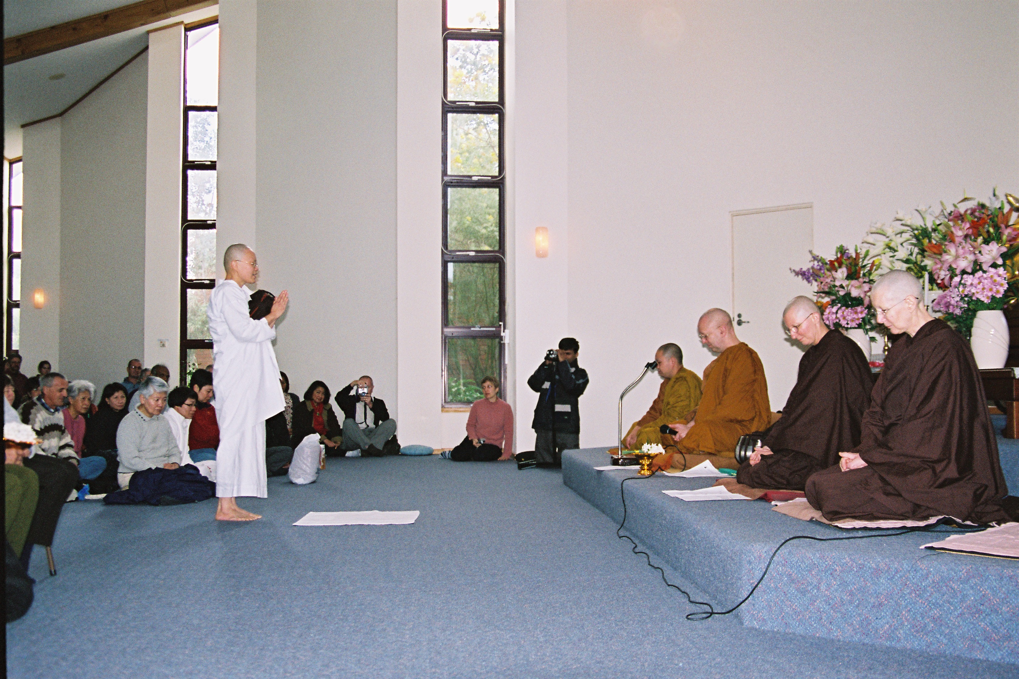 Ayya Vayama Bhikkhuni and Anagarika Seri outside Dhammaloka Buddhist Centre just before Pabbajja Ceremony on 4th July 2004.Anagarika Seri asked for forgiveness from Grandma and mother at the begining of the Pabbajja ceremony on 4th July 2004During Pabbajja Ceremony ( Ten Precept Nun Ordination), the ceremony that marked I went forth, on 4th July 2004Ayya Seri Bhikkhuni at Dhammaloka Buddhist Centre during Pabbajja ceremony on 4th July 2004.After Pabbajja ceremony, the ceremony that I went forth as a nun at Dhammaloka Buddhist Centre, Perth Western Australia on 4th July 2004.