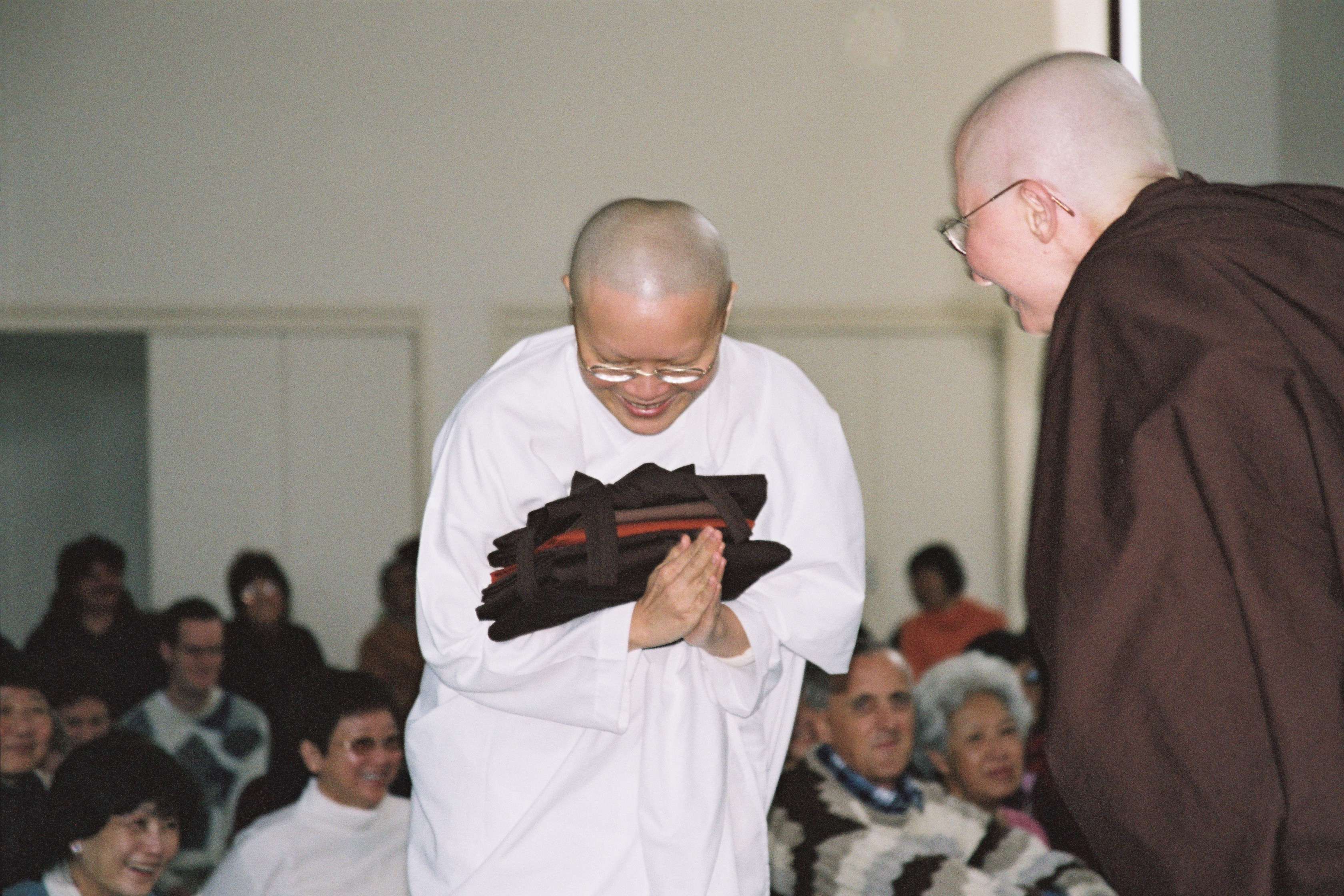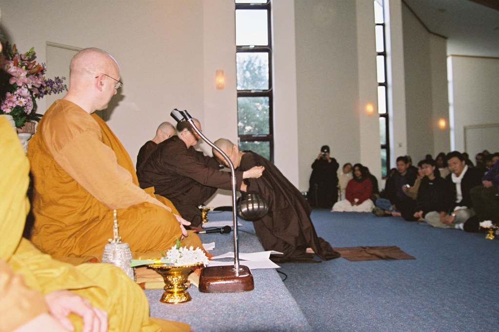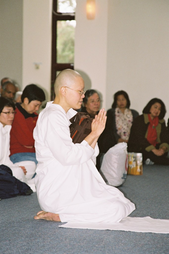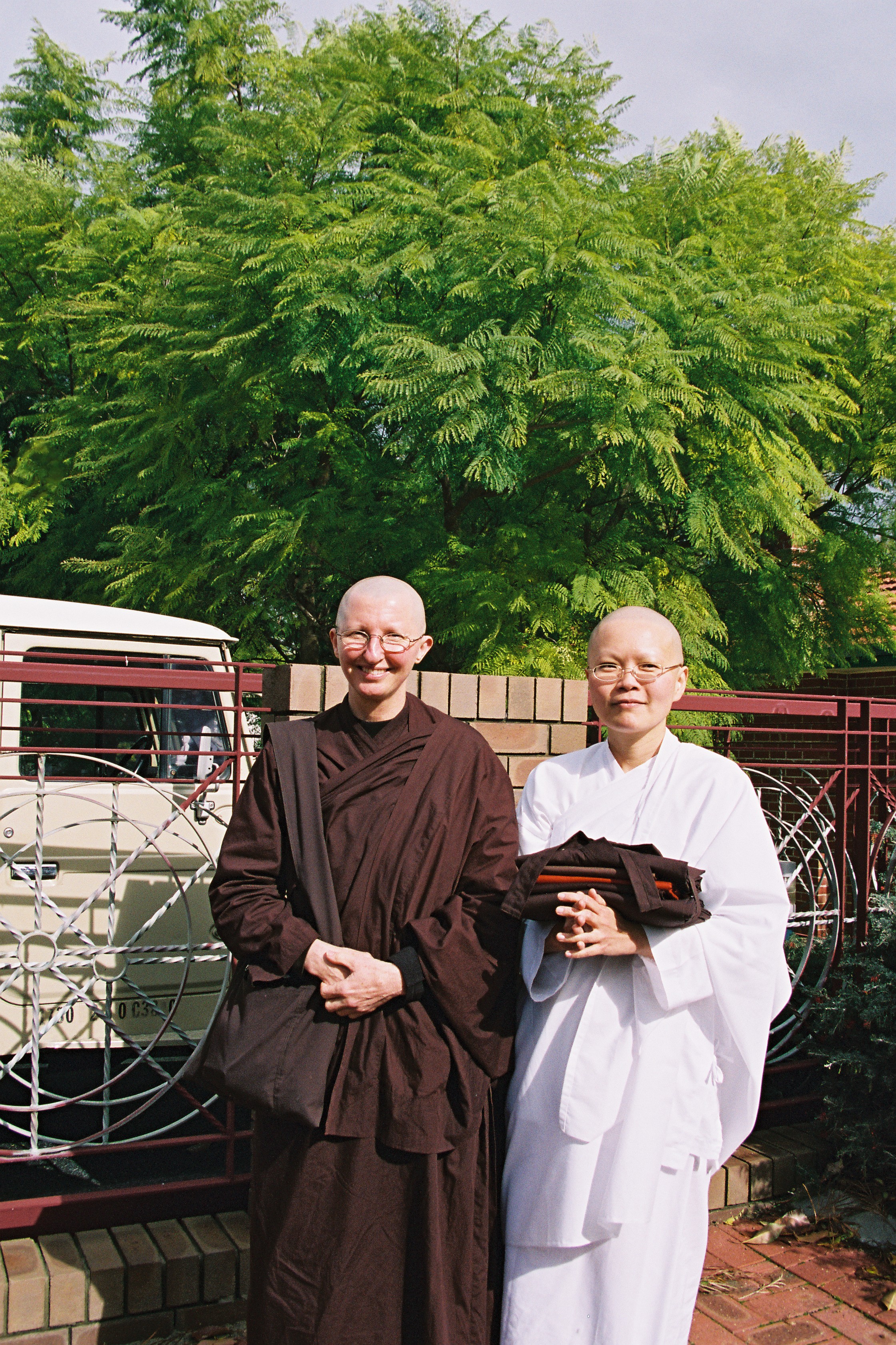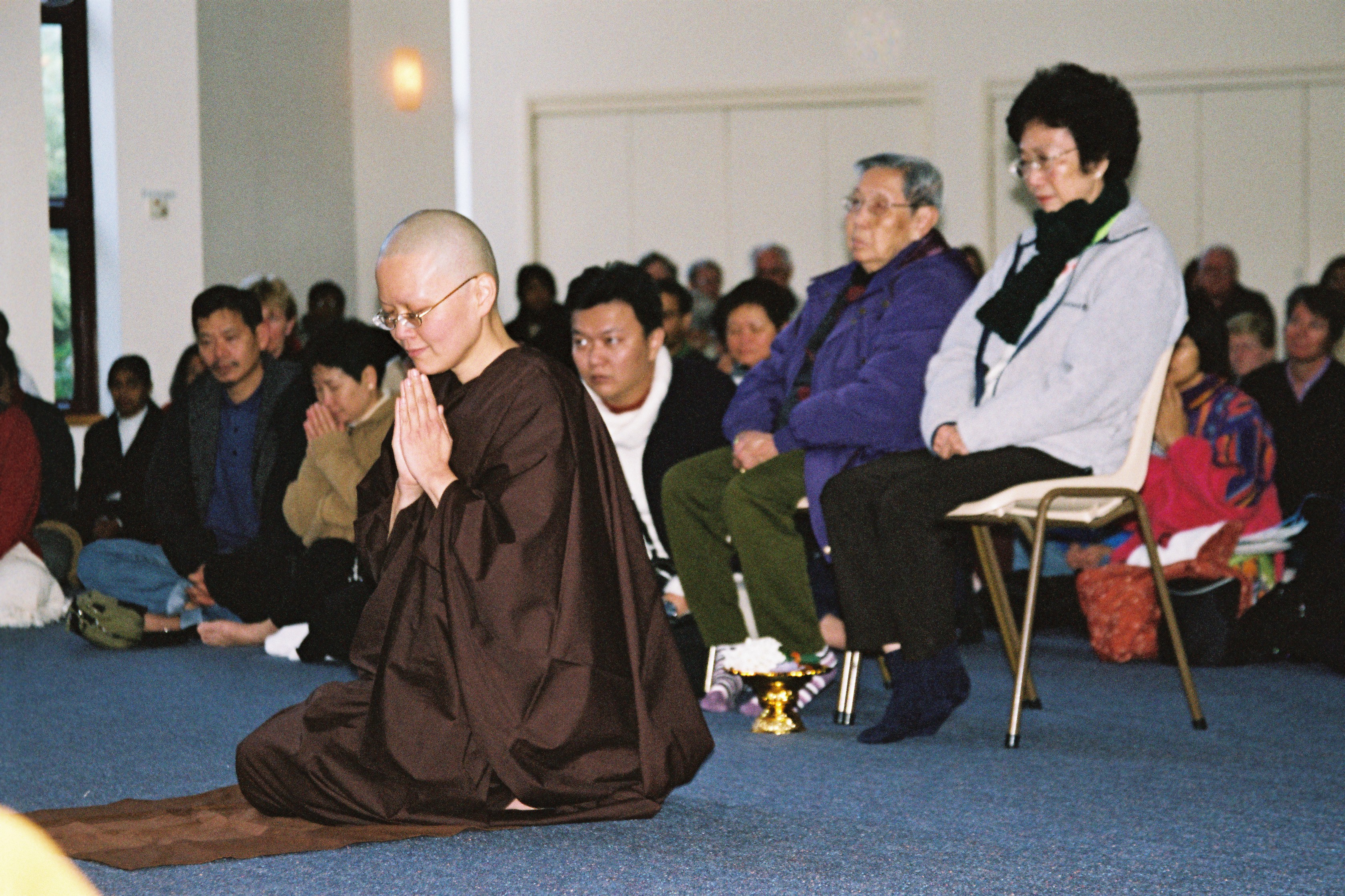 Ayya Vayama Bhikkhuni and Anagarika Seri outside Dhammaloka Buddhist Centre just before Pabbajja Ceremony on 4th July 2004.Anagarika Seri asked for forgiveness from Grandma and mother at the begining of the Pabbajja ceremony on 4th July 2004During Pabbajja Ceremony ( Ten Precept Nun Ordination), the ceremony that marked I went forth, on 4th July 2004Ayya Seri Bhikkhuni at Dhammaloka Buddhist Centre during Pabbajja ceremony on 4th July 2004.After Pabbajja ceremony, the ceremony that I went forth as a nun at Dhammaloka Buddhist Centre, Perth Western Australia on 4th July 2004.