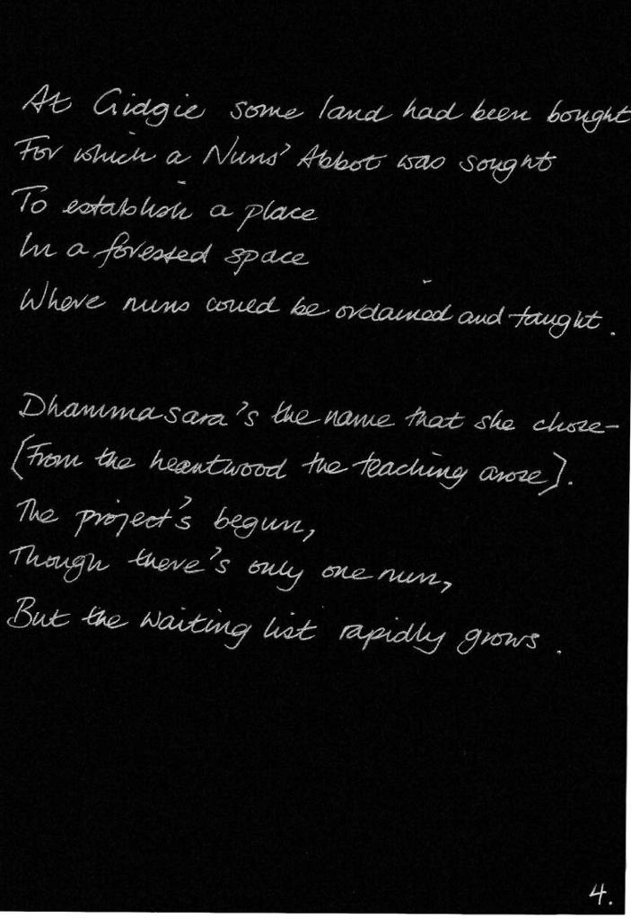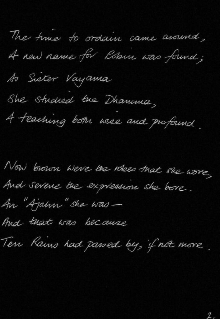 I am sharing a poem which was written by a lay supporter in Perth to celebrate Ayya Vayama Bhikkhuni Theri’s 50th birthday in 2002.